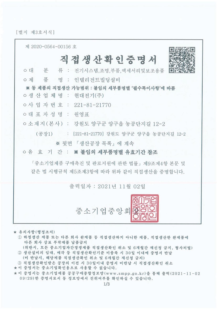 직접생산확인증명서(인텔리전트 빌딩설비) 페이지 정보 작성자 최고관리자 댓글 0건 조회 75회 작성일 23-05-01 08:48 본문 직접생산확인증명서(인텔리전트 빌딩설비) 목록 이전글직접생산확인증명서(압력측정 및 제어용기기) 23.05.01 다음글고효율에너지기자재 인증서 23.05.01 댓글 0 댓글목록 등록된 댓글이 없습니다.