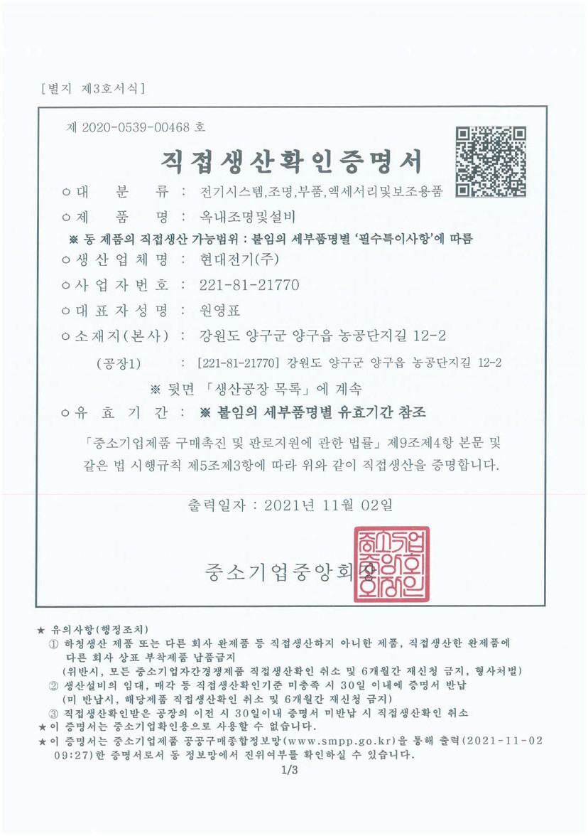 - 다음글직접생산확인증명서(배전, 조정장치 및 액세서리) 23.05.01