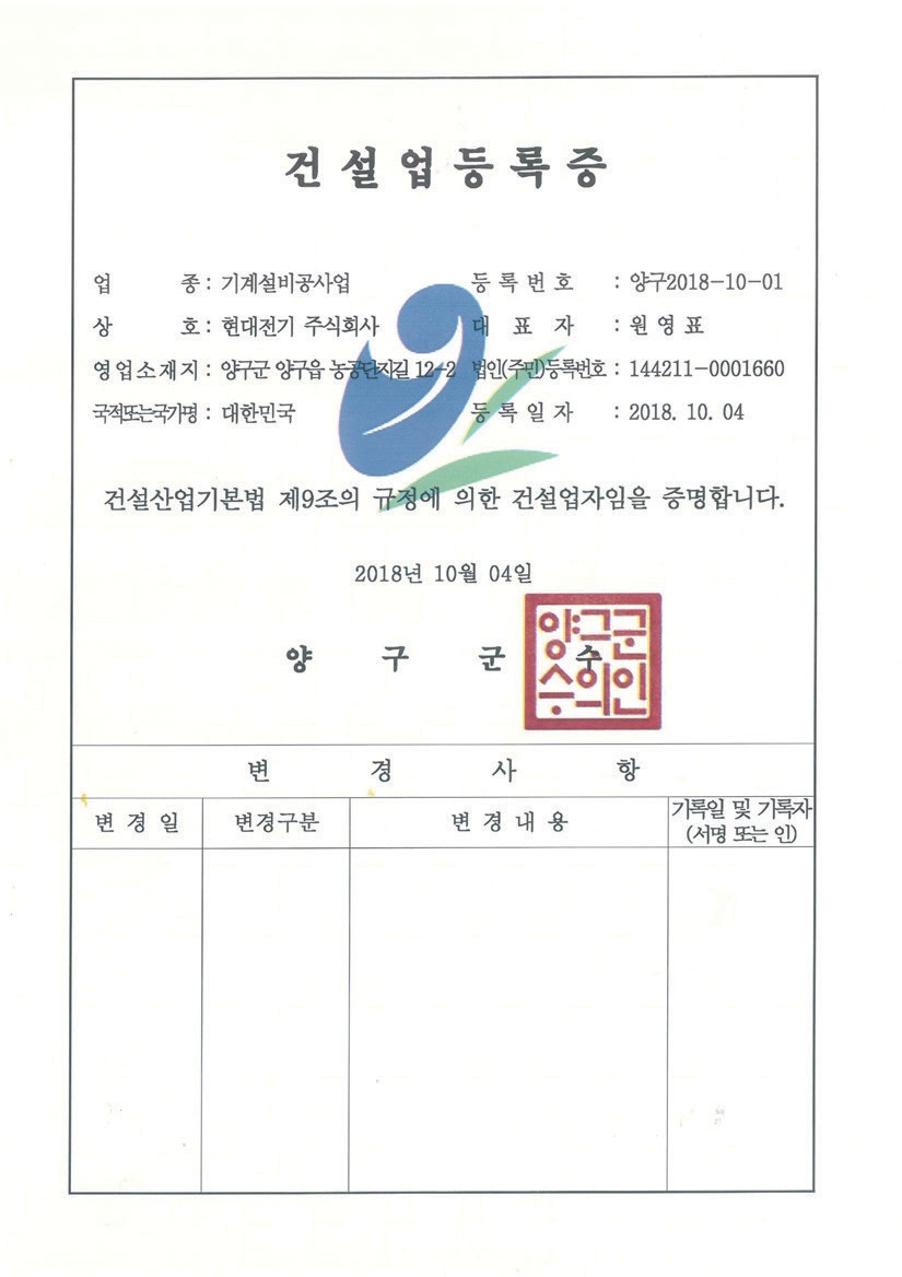 건설업등록증 페이지 정보 작성자 최고관리자 댓글 0건 조회 141회 작성일 23-05-01 08:41 본문 건설업등록증 목록 이전글실내건축공사업 등록증 24.08.24 다음글특허증 23.06.01 댓글 0 댓글목록 등록된 댓글이 없습니다.